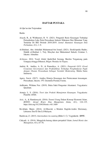 Anam, Khoirul (2023) PENGARUH CURRENT RATIO, DEBT TO EQUITY RATIO, DAN TOTAL ASSET TURNOVER TERHADAP PERTUMBUHAN LABA SERTA TINJAUANNYA DARI SUDUT PANDANG ISLAM (Studi Empiris Pada Perusahaan Sub Sektor Makanan dan Minuman Yang Terdaftar Di Bursa Efek Indonesia periode Tahun 2017-2021). Diploma thesis, Universitas YARSI.