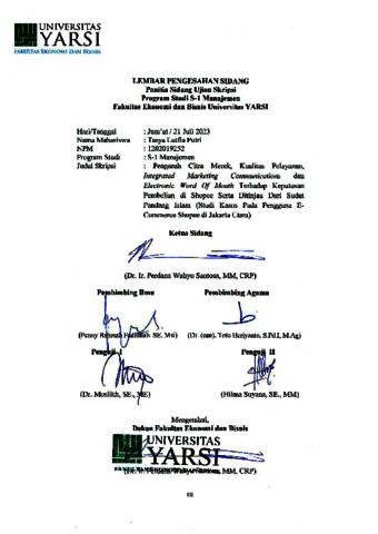 Putri, Tasya Lutfia (2023) PENGARUH CITRA MEREK, KUALITAS PELAYANAN, INTEGRATED MARKETING COMMUNICATIONS (IMC) DAN ELECTRONIC WORD OF MOUTH (EWOM) TERHADAP KEPUTUSAN PEMBELIAN DI SHOPEE SERTA DITINJAU DARI SUDUT PANDANG ISLAM (Studi Kasus Pada Pengguna E-Commerce SHOPEE di Jakarta Utara). Diploma thesis, Universitas YARSI.