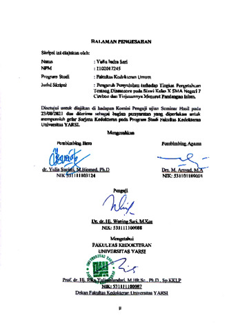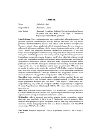 Sari, Yulia Indra (2021) PENGARUH PENYULUHAN TERHADAP TINGKAT PENGETAHUAN TENTANG DISMENORE PADA SISWI KELAS X SMA NEGERI 7 CIREBON DAN TINJAUANNYA MENURUT PANDANGAN ISLAM. Diploma thesis, Universitas YARSI.