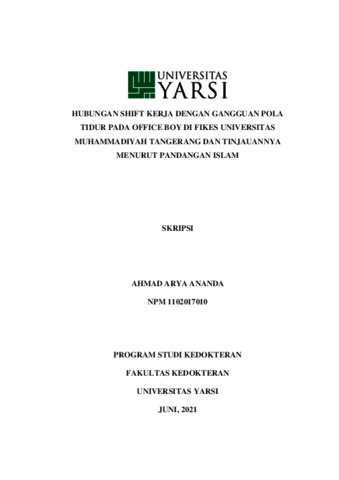 Latar Belakang : Gangguan tidur adalah salah satu gejala dari gangguan lainnya, baik mental atau fisik. Walaupun gangguan tidur yang spesifik terlihat secara klinis berdiri sendiri, sejumlah faktor psikiatrik dan atau fisik yang terkait memberi kontribusi pada kejadiannya. ketika kebutuhan tidur seseorang tidak dapat terpenuhi dengan baik, maka hal itu akan menimbulkan terjadinya kelelahan, dan selanjutnya dapat mengarah pada kejadian kecelakaan kerja. Untuk dapat menjalankan aktivitas seperti bekerja agar produktif, seorang muslim harus tidur sesuai proporsinya. Tidur tersebut tidak boleh terlalu banyak atau berlebihan, atau tidak boleh terlalu kurang. Di dalam keseharian manusia, tidur adalah salah satu proses untuk beristirahat dan juga menjaga energi agar tetap sehat dan fit. Metode : Jenis penelitian kuantitatif dengan rancangan penelitian cross-sectional analitik. Metode sampling yang digunakan adalah purposive sampling. Total populasi 48 responden yang terdiri dari office boy. Data pola tidur didapat dari kuesioner dan kinerja menggunakan kuisoner PSQI. Hasil : Office boy yang memiliki gangguan tidur ringan berjumlah 9 orang sedangkan sedang 31 orang dan tinggi berjumlah 8 orang. Hasil uji statistik uji chi square, didapat nilai p= 0.384 (p>0.05)yang berarti tidak terdapat hubungan antara shift kerja dengan kualitas tidur pada office boy Simpulan : Ilmu kedokteran dan Agama Islam sepakat bahwa harus menjaga kesehatan jiwa raga salah satunya dengan cara istirahat yang cukup.