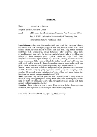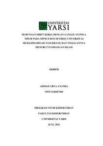 Ananda, Ahmad Arya (2020) HUBUNGAN SHIFT KERJA DENGAN GANGGUAN POLA TIDUR OFFICE BOY DI FIKES UNIVERSITAS MUHAMMADIYAH TANGERANG DAN TINJAUANNYA MENURUT PANDANGAN ISLAM. Diploma thesis, Universitas YARSI.