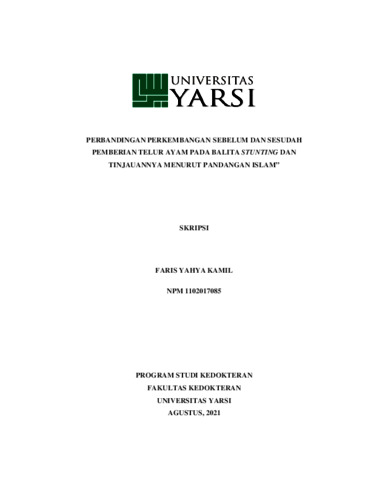 Kamil, Faris Yahya (2021) PERBANDINGAN PERKEMBANGAN SEBELUM DAN SESUDAH PEMBERIAN TELUR AYAM PADA BALITA STUNTING DAN TINJAUANNYA MENURUT PANDANGAN ISLAM. Diploma thesis, Universitas YARSI.