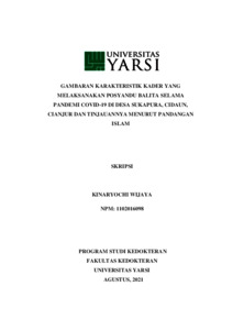Wijaya, Kinaryochi (2019) GAMBARAN KARAKTERISTIK KADER YANG MELAKSANAKAN POSYANDU BALITA SELAMA PANDEMI COVID-19 DI DESA SUKAPURA, CIDAUN, CIANJUR DAN TINJAUANNYA MENURUT PANDANGAN ISLAM. Diploma thesis, Universitas YARSI.