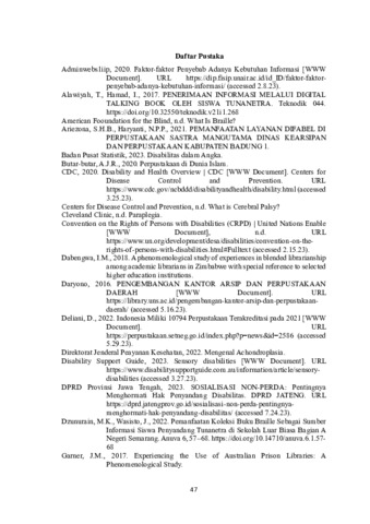 | Uncontrolled Keywords: | Aksesibilitas Non Fisik, Perpustakaan, Disabilitas Tuna Netra, Pengalaman. |