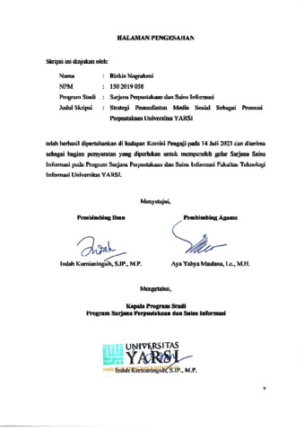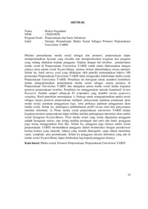 Nugrahani, Rizkia (2023) STRATEGI PEMANFAATAN MEDIA SOSIAL SEBAGAI PROMOSI PERPUSTAKAAN UNIVERSITAS YARSI. Diploma thesis, Universitas YARSI.
