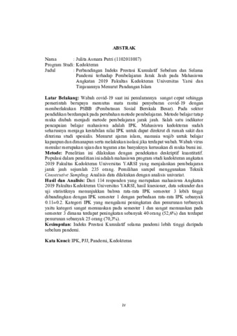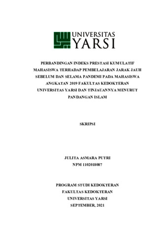 PERBANDINGAN INDEKS PRESTASI KUMULATIF MAHASISWA TERHADAP PEMBELAJARAN JARAK JAUH SEBELUM DAN SELAMA PANDEMI PADA MAHASISWA ANGKATAN 2019 FAKULTAS KEDOKTERAN UNIVERSITAS YARSI DAN TINJAUANNYA MENURUT PANDANGAN ISLAM