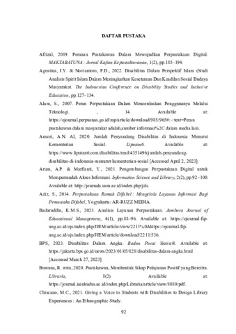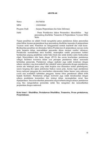 | Uncontrolled Keywords: | Disabilitas, Pustakawan Disabilitas, Tunanetra, Peran pustakawan, Perpustakaan. |