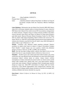 | Uncontrolled Keywords: | Bakteri Coliform, Air Minum Isi Ulang, Uji TPC, Uji MPN, Uji Biokimia. |