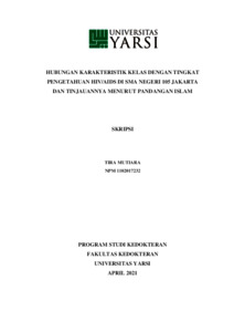Mutiara, Tira (2021) HUBUNGAN KARAKTERISTIK KELAS DENGAN TINGKAT PENGETAHUAN HIV/AIDS DI SMA NEGERI 105 JAKARTA DAN TINJAUANNYA MENURUT PANDANGAN ISLAM. Diploma thesis, Universitas YARSI.