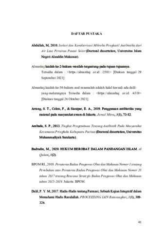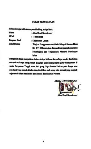Nurmitasari, Alisa Dewi (2021) TINGKAT PENGGUNAAN ANTIBIOTIK SEBAGAI SWAMEDIKASI DI RT 02 PERUMAHAN TAMAN BUMYAGARA KECAMATAN MUSTIKAJAYA DAN TINJAUANNYA MENURUT PANDANGAN ISLAM. Diploma thesis, Universitas YARSI.