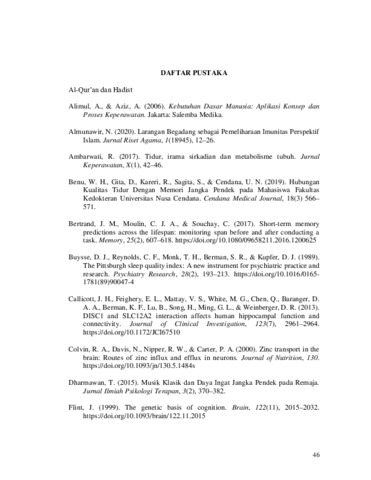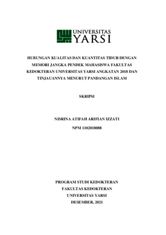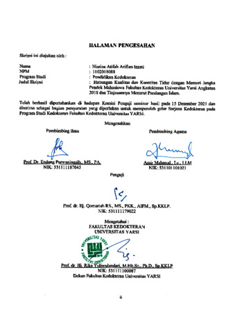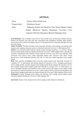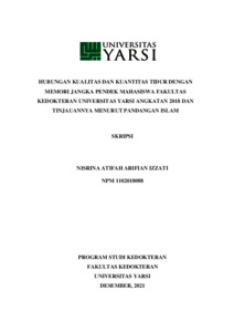 Izzati, Nisrina Atifah Arifian (2021) HUBUNGAN KUALITAS DAN KUANTITAS TIDUR DENGAN MEMORI JANGKA PENDEK MAHASISWA FAKULTAS KEDOKTERAN UNIVERSITAS YARSI ANGKATAN 2018 DAN TINJAUANNYA MENURUT PANDANGAN ISLAM. Diploma thesis, Universitas YARSI.