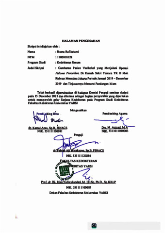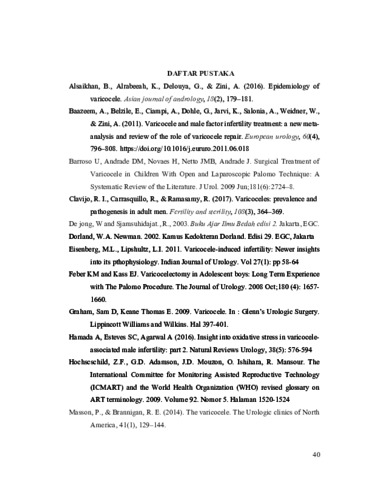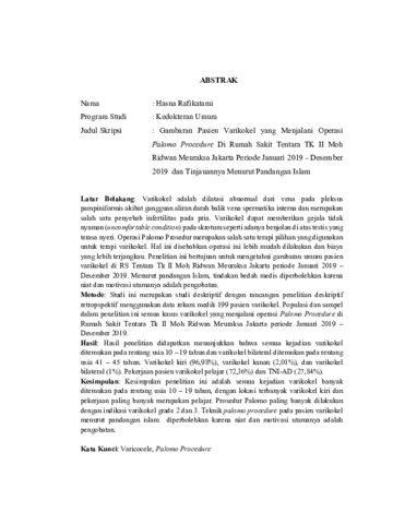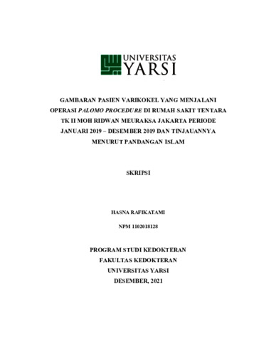 Rafikatami, Hasna (2021) GAMBARAN PASIEN VARIKOKEL YANG MENJALANI OPERASI PALOMO PROCEDURE DI RUMAH SAKIT TENTARA TK II MOH RIDWAN MEURAKSA JAKARTA PERIODE JANUARI 2019 – DESEMBER 2019 DAN TINJAUANNYA MENURUT PANDANGAN ISLAM. Diploma thesis, Universitas YARSI.