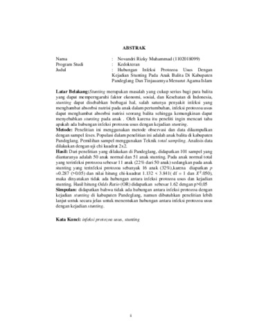 Muhammad, Novandri Rizky (2022) HUBUNGAN INFEKSI PROTOZOA USUS DENGAN KEJADIAN STUNTING PADA ANAK BALITA DI KABUPATEN PANDEGLANG DAN TINJAUANNYA MENURUT PANDANGAN ISLAM. Diploma thesis, Universitas YARSI.
