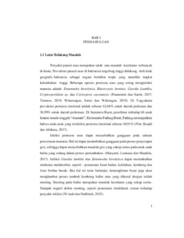 Uncontrolled Keywords: infeksi protozoa usus, stunting