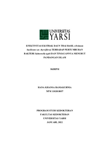 EFEKTIVITAS EKSTRAK DAUN THAI BASIL (Ocimum basilicum var. thyrsiflora) TERHADAP PERTUMBUHAN BAKTERI Salmonella typhi DAN TINJAUANNYA MENURUT PANDANGAN ISLAM