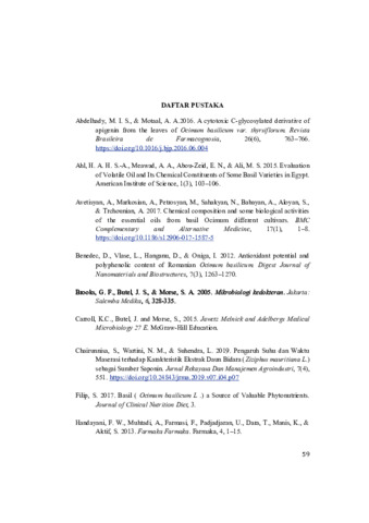 Ramakurnia, Hana Khansa (2022) EFEKTIVITAS EKSTRAK DAUN THAI BASIL (Ocimum basilicum var. thyrsiflora) TERHADAP PERTUMBUHAN BAKTERI Salmonella typhi DAN TINJAUANNYA MENURUT PANDANGAN ISLAM. Diploma thesis, Universitas YARSI.