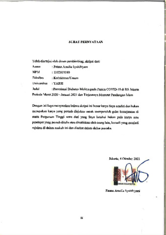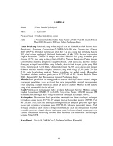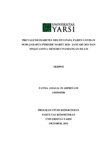 Syahfriyani, Fatma amalia (2021) PREVALENSI DIABETES MELITUS PADA PASIEN COVID-19 DI RS JAKARTA PERIODE MARET 2020 - JANUARI 2021 DAN TINJAUANNYA MENURUT PANDANGAN ISLAM. Diploma thesis, Universitas YARSI.