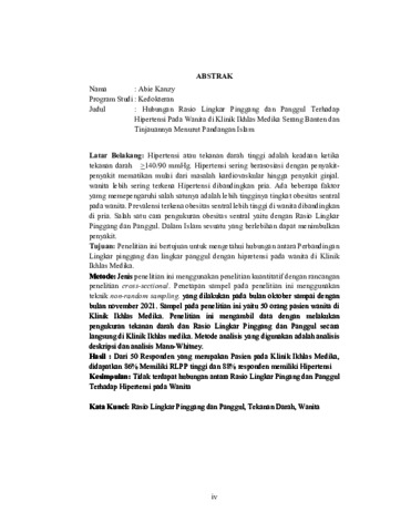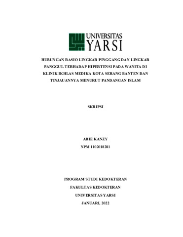 Kanzy, Abie (2021) HUBUNGAN RASIO LINGKAR PINGGANG DAN LINGKAR PANGGUL TERHADAP HIPERTENSI PADA WANITA DI KLINIK IKHLAS MEDIKA KOTA SERANG BANTEN DAN TINJAUANNYA MENURUT PANDANGAN ISLAM. Diploma thesis, Universitas YARSI.