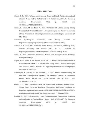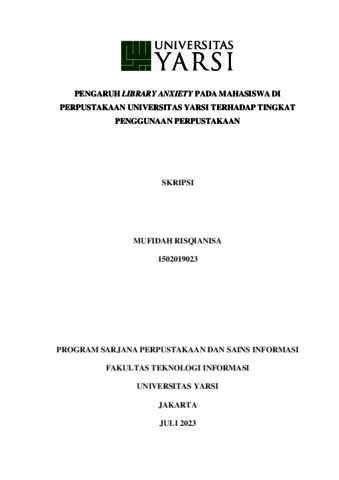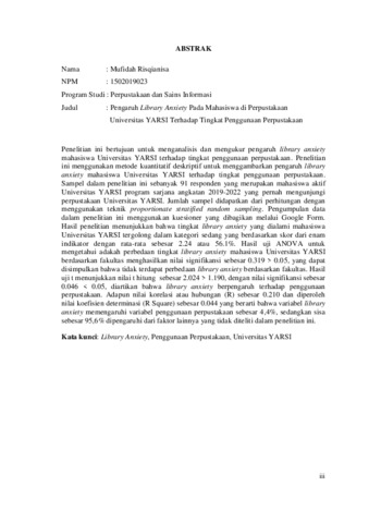 Risqianisa, Mufidah (2023) PENGARUH LIBRARY ANXIETY PADA MAHASISWA DI PERPUSTAKAAN UNIVERSITAS YARSI TERHADAP TINGKAT PENGGUNAAN PERPUSTAKAAN. Diploma thesis, Universitas YARSI.