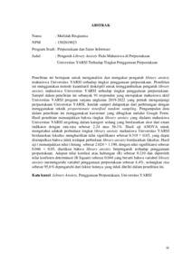 | Uncontrolled Keywords: | Library Anxiety, Penggunaan Perpustakaan, Universitas YARSI |