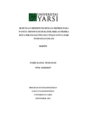 Muhamad, Fariz Kamal (2021) HUBUNGAN HIPERTENSI DENGAN DEPRESI PADA WANITA MENOPAUSE DI KLINIK IKHLAS MEDIKA KOTA SERANG BANTEN DAN TINJAUANNYA DARI PANDANGAN ISLAM. Diploma thesis, Universitas YARSI.
