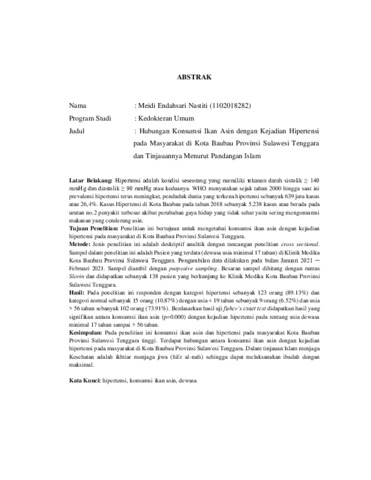 HUBUNGAN KONSUMSI IKAN ASIN DENGAN KEJADIAN HIPERTENSI PADA MASYARAKAT DI KOTA BAUBAU PROVINSI SULAWESI TENGGARA DAN TINJAUANNYA MENURUT PANDANGAN ISLAM