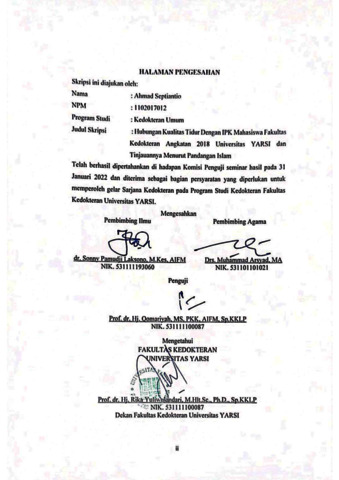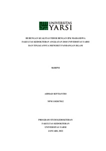 Septiantio, Ahmad (2022) HUBUNGAN KUALITAS TIDUR DENGAN IPK MAHASISWA FAKULTAS KEDOKTERAN ANGKATAN 2018 UNIVERSITAS YARSI DAN TINJAUANNYA MENURUT PANDANGAN ISLAM. Diploma thesis, Universitas YARSI.