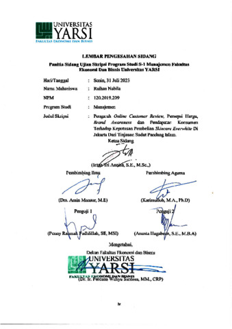 | Uncontrolled Keywords: | Online Customer Review, Persepsi Harga, Brand Awareness, Pendapatan Konsumen, Keputusan Pembelian dan Skincare Everwhite. |