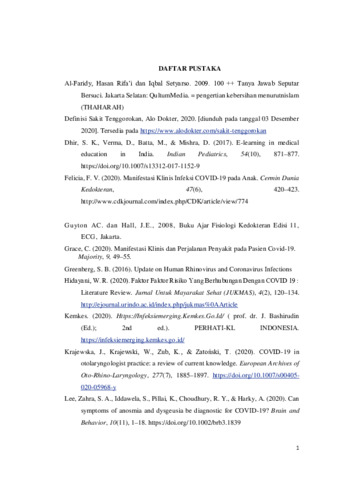 | Uncontrolled Keywords: | Covid-19, Manifestasi Klinis Telinga Hidung Tengorok |