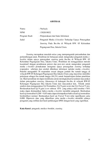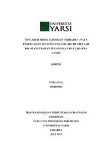 Nurlayly, Nurlayly (2023) PENGARUH MEDIA E-BOOKLET TERHADAP UPAYA PENCEGAHAN STUNTING PADA IBU-IBU DI WILAYAH RW. 05 KELURAHAN PEGANGSAAN DUA JAKARTA UTARA. Diploma thesis, Universitas YARSI.