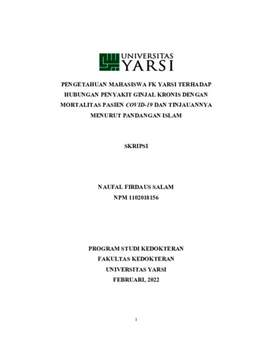 Salam, Naufal Firdaus (2021) PENGETAHUAN MAHASISWA FK YARSI TERHADAP HUBUNGAN PENYAKIT GINJAL KRONIS DENGAN MORTALITAS PASIEN COVID-19 DAN TINJAUANNYA MENURUT PANDANGAN ISLAM. Diploma thesis, Universitas Yarsi.