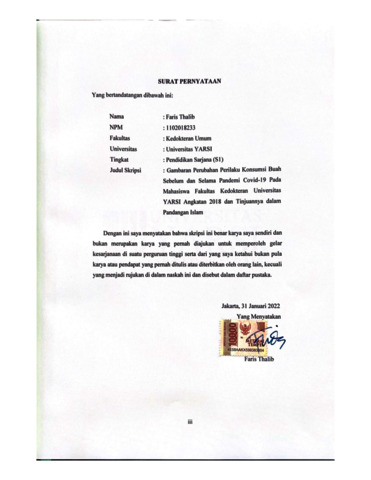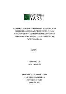 Thalib, Faris (2021) GAMBARAN PERUBAHAN KEBIASAAN KONSUMSI BUAH SEBELUM DAN SELAMA PANDEMI COVID-19 PADA MAHASISWA FAKULTAS KEDOKTERAN UNIVERSITAS YARSI ANGKATAN 2018 DAN TINJAUANNYA DALAM PANDANGAN ISLAM. Diploma thesis, Universitas YARSI.