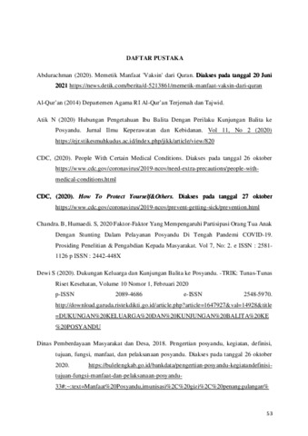 Agustyani, Bella Fizri (2021) FAKTOR-FAKTOR YANG BERHUBUNGAN DENGAN KUNJUNGAN IBU DAN BALITA KE POSYANDU SELAMA PANDEMI COVID-19 DI DESA SUKAPURA, CIDAUN, CIANJUR, DAN TINJAUANNYA MENURUT PANDANGAN ISLAM. Diploma thesis, Universitas YARSI.