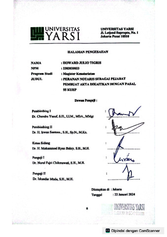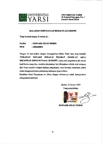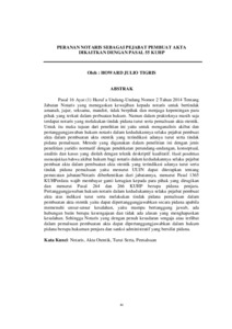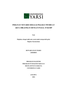 Tigris, Howard Julio (2024) PERANAN NOTARIS SEBAGAI PEJABAT PEMBUAT AKTA DIKAITKAN DENGAN PASAL 55 KUHP. Masters thesis, Universitas YARSI.