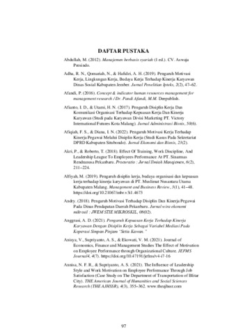 Mallomo, Fadillah (2023) PENGARUH MOTIVASI KERJA DAN KEPUASAN KERJA TERHADAP KINERJA KARYAWAN DENGAN DISIPLIN KERJA SEBAGAI VARIABEL MEDIASI SERTA TINJAUANNYA MENURUT SUDUT PANDANG ISLAM (Studi Kasus Pada PT.KADONIO INDONESIA JAYA). Diploma thesis, Universitas YARSI.