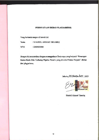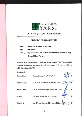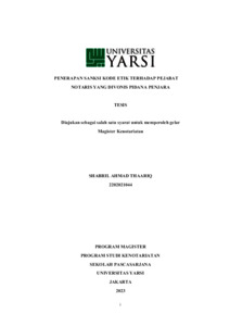Thaariq, Shabril Ahmad (2023) PENERAPAN SANKSI KODE ETIK TERHADAP PEJABAT NOTARIS YANG DIVONIS PIDANA PENJARA. Masters thesis, Universitas YARSI.