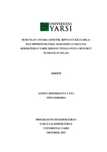 Ulfa, Alifiya Rofikhatul (2021) HUBUNGAN ANTARA GENETIK (RIWAYAT KELUARGA) DAN HIPERTENSI PADA MAHASISWA FAKULTAS KEDOKTERAN YARSI 2020 DAN TINJAUANNYA MENURUT PANDANGAN ISLAM. Diploma thesis, Universitas YARSI.