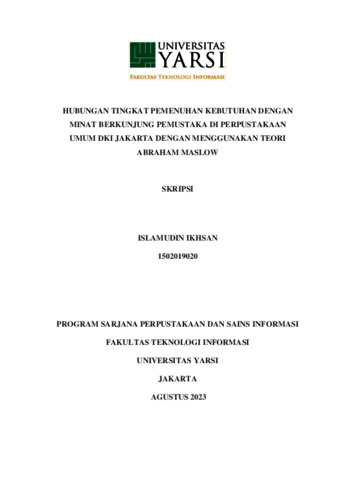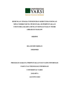 Ikhsan, Islamudin (2023) HUBUNGAN TINGKAT PEMENUHAN KEBUTUHAN DENGAN MINAT BERKUNJUNG PEMUSTAKA DI PERPUSTAKAAN UMUM DKI JAKARTA DENGAN MENGGUNAKAN TEORI ABRAHAM MASLOW. Diploma thesis, Universitas YARSI.