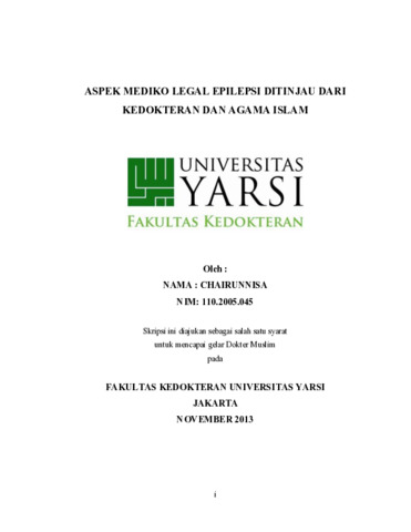 Chairunnisa, Chairunnisa (2013) ASPEK MEDIKO LEGAL EPILEPSI DITINJAU DARI KEOKTERAN DAN AGAMA ISLAM. Diploma thesis, Universitas YARSI.