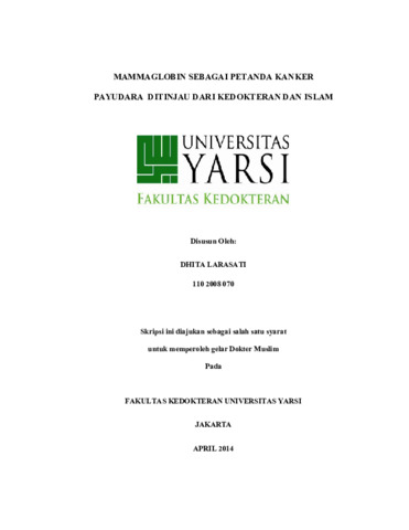 Larasati, Dhita (2014) MAMMAGLOBIN SEBAGAI PERTANDA KANKER PAYUDARA DITINJAU DARI KEDOKTERAN DAN ISLAM. Diploma thesis, Universitas YARSI.