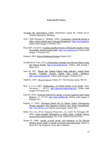 Himawan, Rahmani Nadya Dewi (2014) PENGARUH FAKTOR KULTURAL DALAM MOTIF PERILAKU PEMBUNUHAN YANG DISERTAI BUNUH DIRI DITINJAU DARI KEDOKTERAN DAN ISLAM. Diploma thesis, Universitas YARSI.