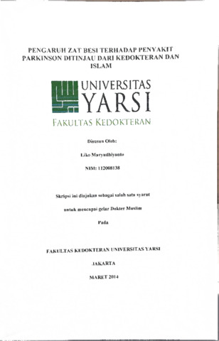Maryudhiyanto, Liko (2014) PENGARUH ZAT BESI TERHADAP PENYAKIT PARKINSON DITINJAU DARI KEDOKTERAN DAN ISLAM. Diploma thesis, Universitas YARSI.