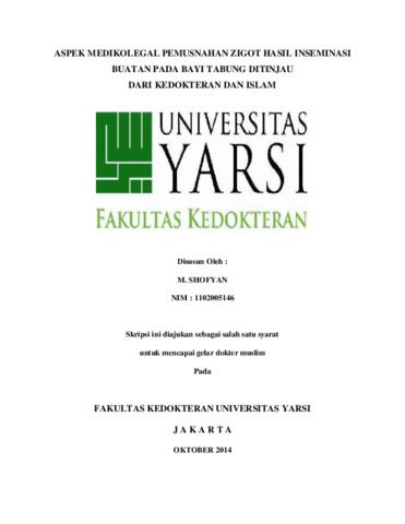M. Shofyan, M. Shofyan (2014) ASPEK MEDIKOLEGAL PEMUSNAHAN ZIGOT HASIL INSEMINASI PADA BAYI TABUNG DITINJAU DARI KEDOKTERAN DAN ISLAM. Diploma thesis, Universitas YARSI.