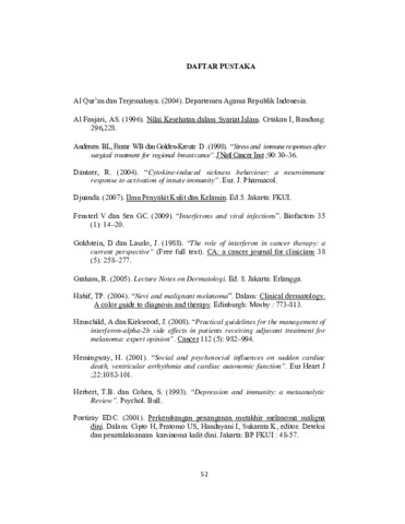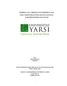 Devika, Pritta (2013) DEPRESI YANG TERINDUKSI INTERFERON ALFA PADA TERAPI MELANOMA MALIGNA DITINJAU DARI KEDOKTERAN DAN ISLAM. Diploma thesis, Universitas YARSI.