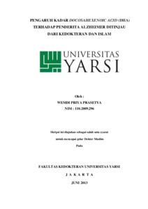 Priya Prasetya, Wemdi (2013) PENGARUH KADAR DOCOSAHEXENOIC ACID (DHA) TERHADAP PENDERITA ALZHEIMER DITINJAU DARI KEDOKTERAN DAN ISLAM. Diploma thesis, Universitas YARSI.