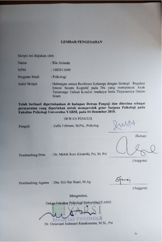 Arianda, Ria (2018) HUBUNGAN ANTARA RESILIENSI KELUARGA DENGAN STRATEGI REGULASI EMOSI SECARA KOGNITIF PADA IBU YANG MEMPUNYAI ANAK TUNARUNGU TERKAIT KONDISI ANAKNYA SERTA TINJAUANNYA DALAM ISLAM. Diploma thesis, Universitas YARSI.