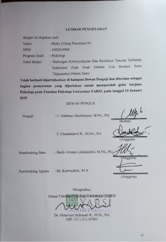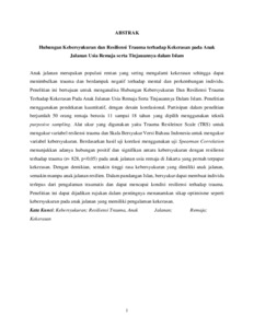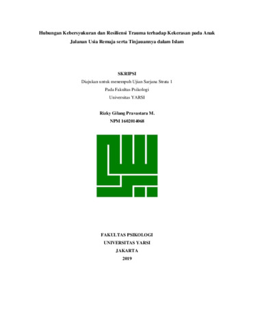 Mahardhika, Rizky Gilang Pravastara (2019) HUBUNGAN KEBERSYUKURAN DAN RESILIENSI TRAUMA TERHADAP KEKERASAN PADA ANAK JALANAN USIA REMAJA SERTA TINJAUANNYA DALAM ISLAM. Diploma thesis, Universitas YARSI.