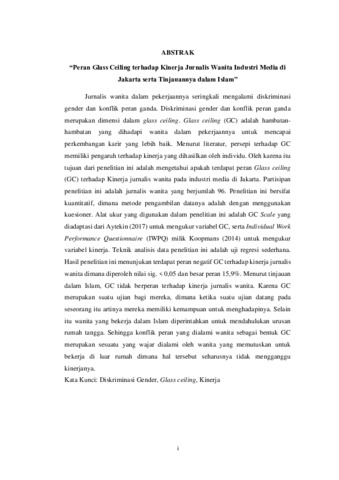 Sakha, Azizah (2019) PERAN GLASS CEILING TERHADAP KINERJA JURNALIS WANITA INDUSTRI MEDIA DI JAKARTA SERTA TINJAUANNYA DALAM ISLAM. Diploma thesis, Universitas YARSI.