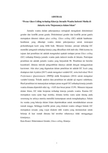 Jurnalis wanita dalam pekerjaannya seringkali mengalami diskriminasi gender dan konflik peran ganda. Diskriminasi gender dan konflik peran ganda merupakan dimensi dalam glass ceiling. Glass ceiling (GC) adalah hambatan-hambatan yang dihadapi wanita dalam pekerjaannya untuk mencapai perkembangan karir yang lebih baik. Menurut literatur, persepi terhadap GC memiliki pengaruh terhadap kinerja yang dihasilkan oleh individu. Oleh karena itu tujuan dari penelitian ini adalah mengetahui apakah terdapat peran Glass ceiling (GC) terhadap Kinerja jurnalis wanita pada industri media di Jakarta. Partisipan penelitian ini adalah jurnalis wanita yang berjumlah 96. Penelitian ini bersifat kuantitatif, dimana metode pengambilan datanya adalah dengan menggunakan kuesioner. Alat ukur yang digunakan dalam penelitian ini adalah GC Scale yang diadaptasi dari Aytekin (2017) untuk mengukur variabel GC, serta Individual Work Performance Questionnaire (IWPQ) milik Koopmans (2014) untuk mengukur variabel kinerja. Teknik analisis data penelitian ini adalah uji regresi sederhana. Hasil penelitian ini menunjukan terdapat peran negatif GC terhadap kinerja jurnalis wanita dimana diperoleh nilai sig. < 0,05 dan besar peran 15,9%. Menurut tinjauan dalam Islam, GC tidak berperan terhadap kinerja jurnalis wanita. Karena GC merupakan suatu ujian bagi mereka, dimana ketika suatu ujian datang pada seseorang itu artinya mereka memiliki kemampuan untuk menghadapinya. Selain itu wanita yang bekerja dalam Islam diperintahkan untuk mendahulukan urusan rumah tangga. Sehingga konflik peran yang dialami wanita sebagai bentuk GC merupakan sesuatu yang wajar dialami oleh wanita yang memutuskan untuk bekerja di luar rumah dimana hal tersebut seharusnya tidak mengganggu kinerjanya.
