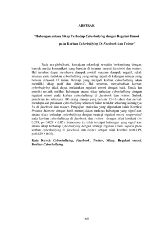 Wahyuni, Indri Aprilia (2017) HUBUNGAN ANTARA SIKAP TERHADAP CYBERBULLYING DENGAN REGULASI EMOSI PADA KORBAN CYBERBULLYING DI FACEBOOK DAN TWITTER SERTA TINJAUANNYA DALAM PERSPEKTIF ISLAM. Diploma thesis, Universitas YARSI.